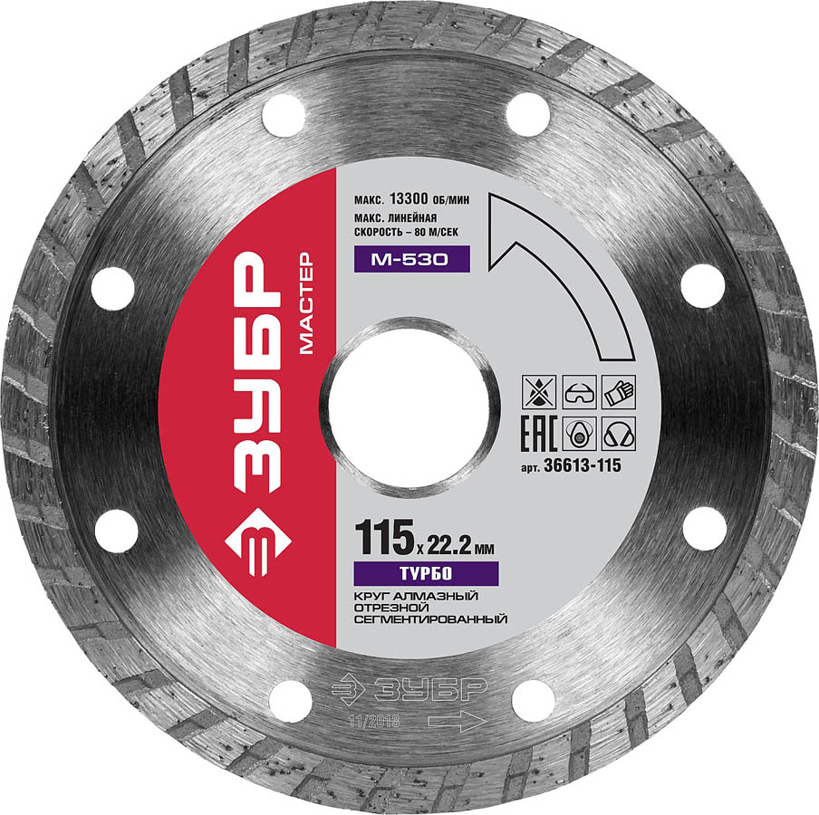 Применяются в угловой шлифовальной машине для резки (сухой и с применением охлаждающей жидкости):• бетона• гранита• кирпича• камня• мрамора• других строительных материаловВремя непрерывной работы не должно превышать 60–90 с, после чего необходимо охлаждать диск на холостом ходу не менее 20 с. Направление вращения должно строго соответствовать направлению стрелки. Запрещается использовать диск для резки и шлифовки металлов. В случае засаливания диска можно восстановить его режущую способность, выполнив серию резов по однородному абразивному материалу.Преимущества:• Оригинальная форма режущей кромки с компенсационными отверстиями по всей окружности.• Эффективная работа без принудительного охлаждения алмазного слоя