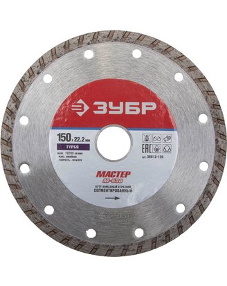 Диск отрезн.алмазн.ЗУБР сегм.150*22,2мм"ТУРБО" 36613-150