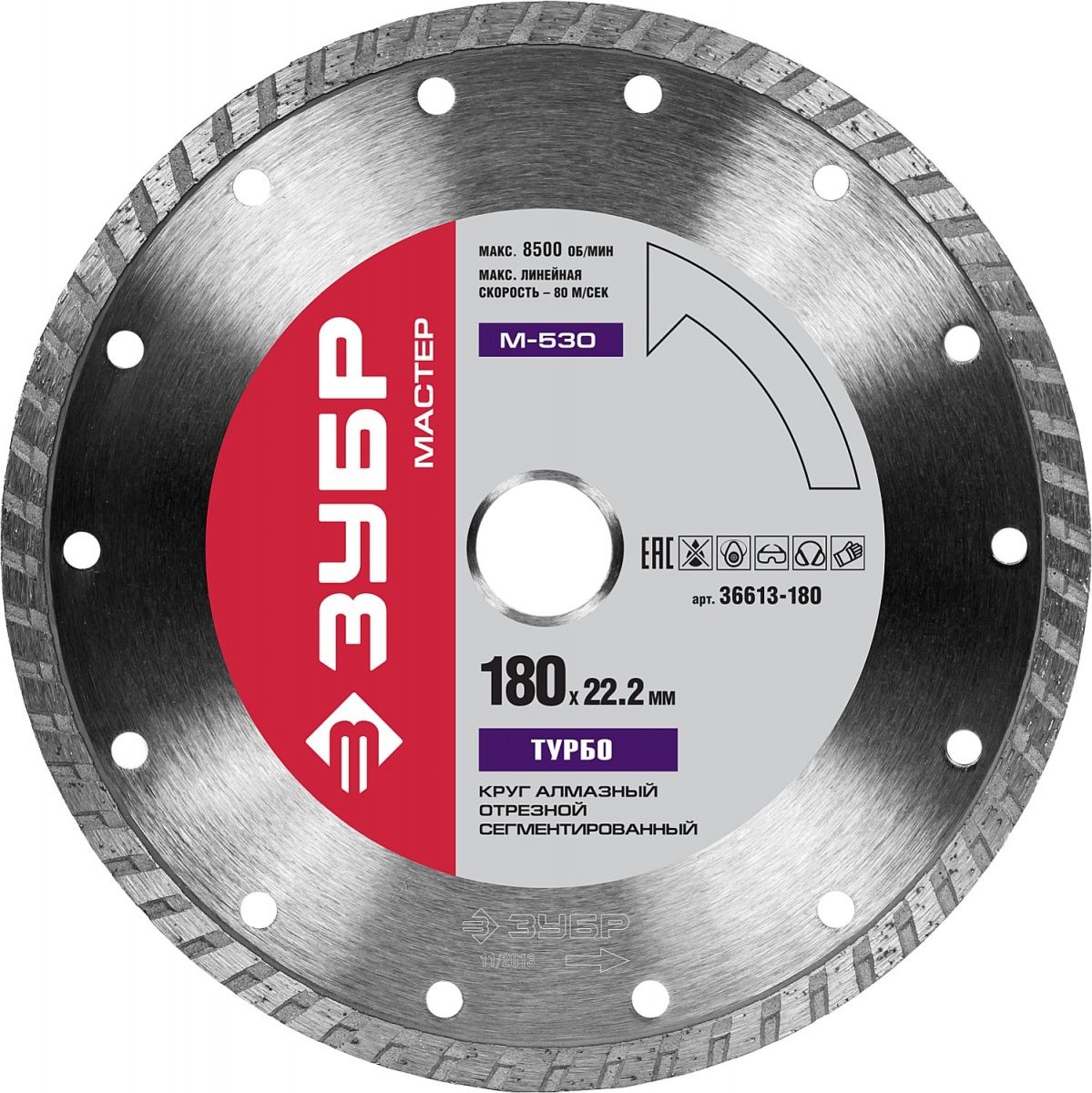 Диск отрезн.алмазн.ЗУБР сегм.180*22,2мм"ТУРБО" 36613-180