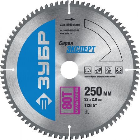 Диск пильный 250*32 80Т по алюминию ЗУБР Мультирез 36907-250-32-80