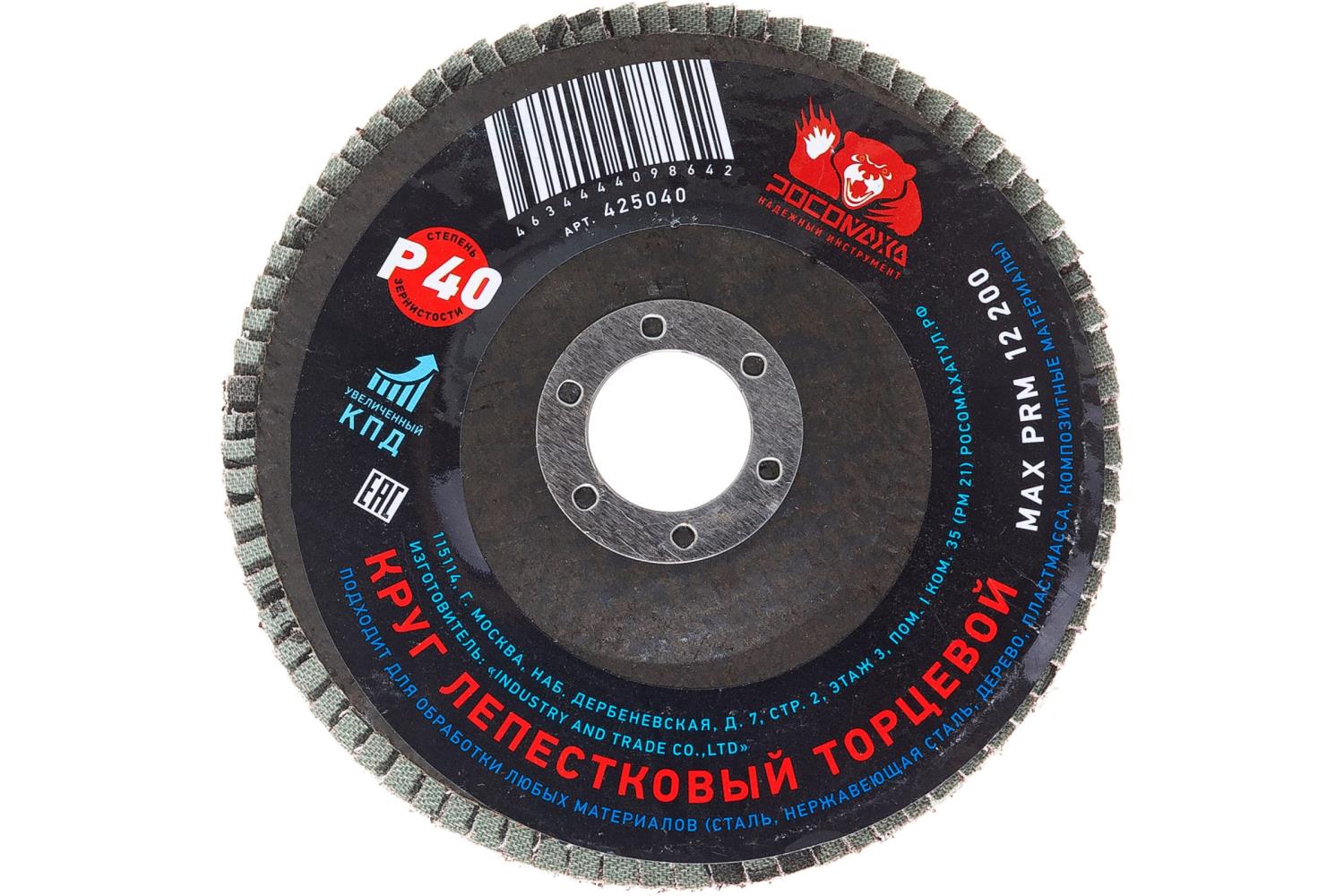 Технические характеристики торцевого лепесткового круга РОСОМАХА 425040