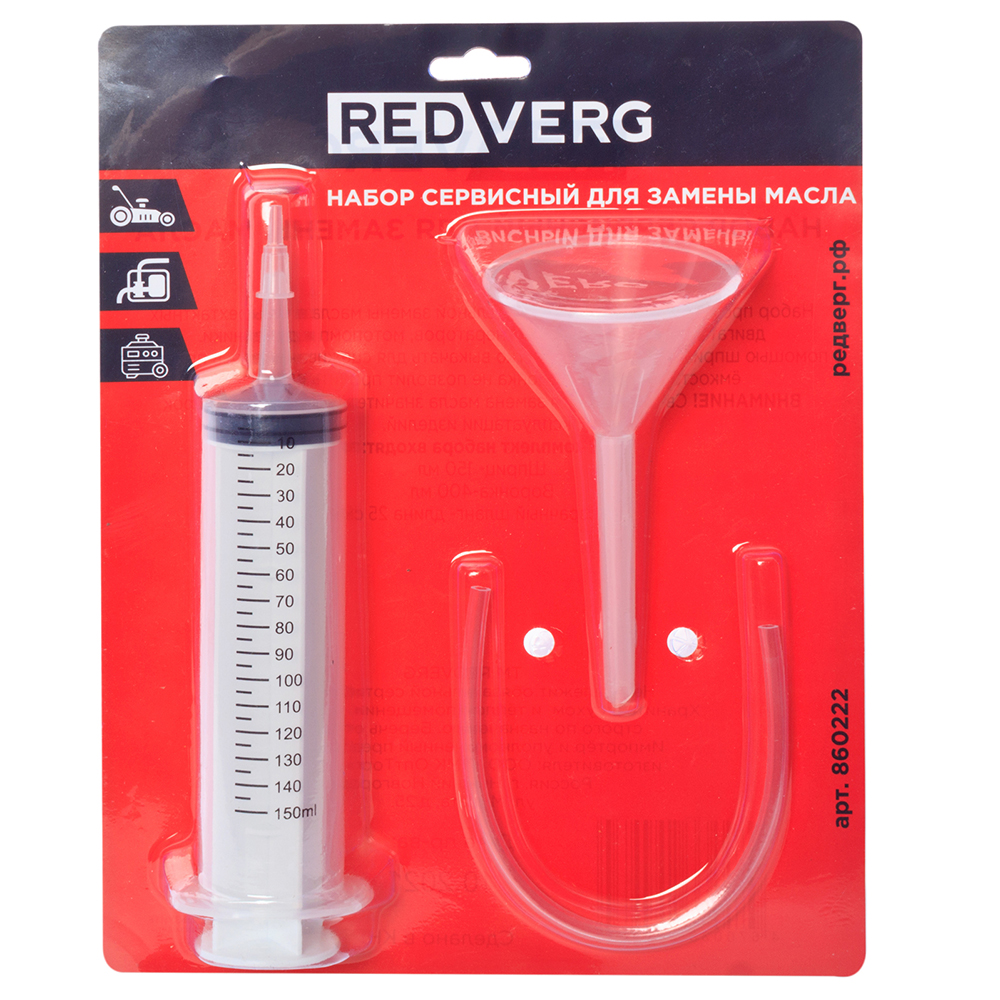 Набор сервисный RedVerg для удобной замены масла. Шприц 150мл; прозрачный шланг 25см; воронка.