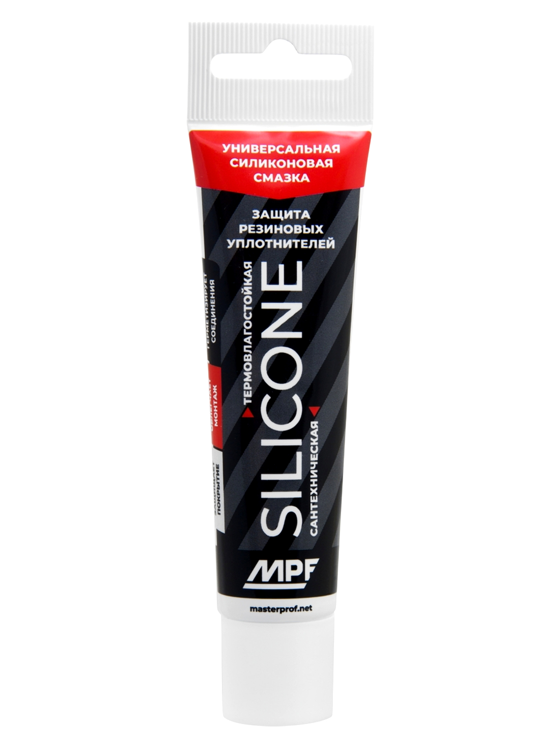 Смазка силиконовая универсальная 30 г применяется для улучшения скольжения при монтаже канализационных труб и фасонных частей деталей сантехприборов, муфт, фитингов, уплотнительных прокладок пластмассовых труб, для герметизации соединений при сборке пластмассовых муфт трубопроводов канализации, при установке резиновых прокладок и уплотнений, при протяжке кабелей в трубах, для защиты от влаги, смазки замков, петель и т.д. Обеспечивает защиту резиновых уплотнений от старения. Состав - силикон, загустители, фторопласт