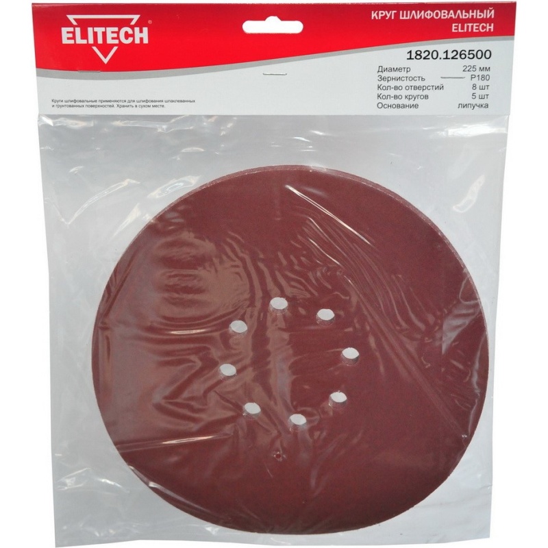 Круг шлифовальный ELITECH 225мм Р180 5шт 1820.126500/200002