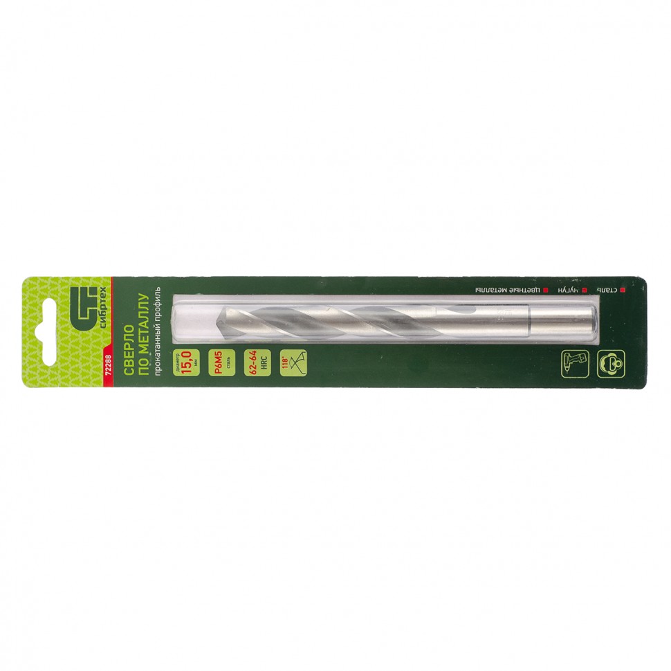Сверло по металлу Сибртех 72288 из стали P6M5 имеет угол заточки 118 градусов и позволяет получать отверстия диаметром 15,0 мм в черных и тяжелых металлах, в том числе стали, чугуне и твердой бронзе. Сверло отличается наиболее выгодной стоимостью по сравнению с другими моделями из стали P6M5. Используется для монтажно-сборочных работ, будет полезно в быту.