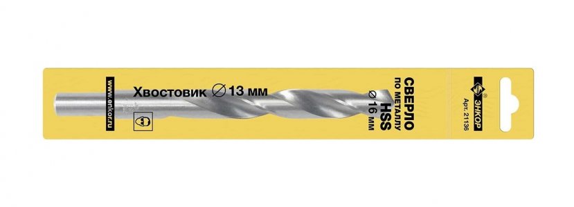 Сверло по металлу 16,0*120/178мм HSS 13мм Энкор 21136