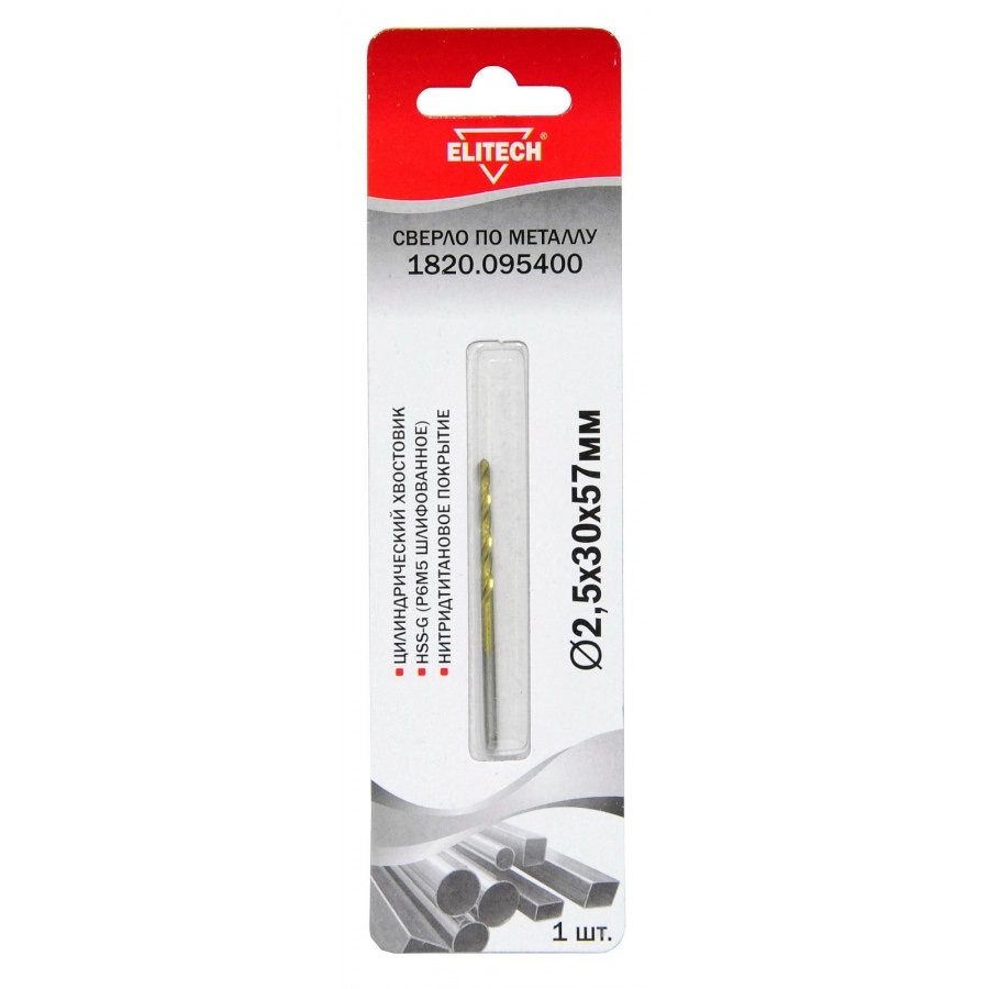 Сверло по металлу 2,5*57мм HSS-G с титан. покр. Elitech 1820.095400/ 191258