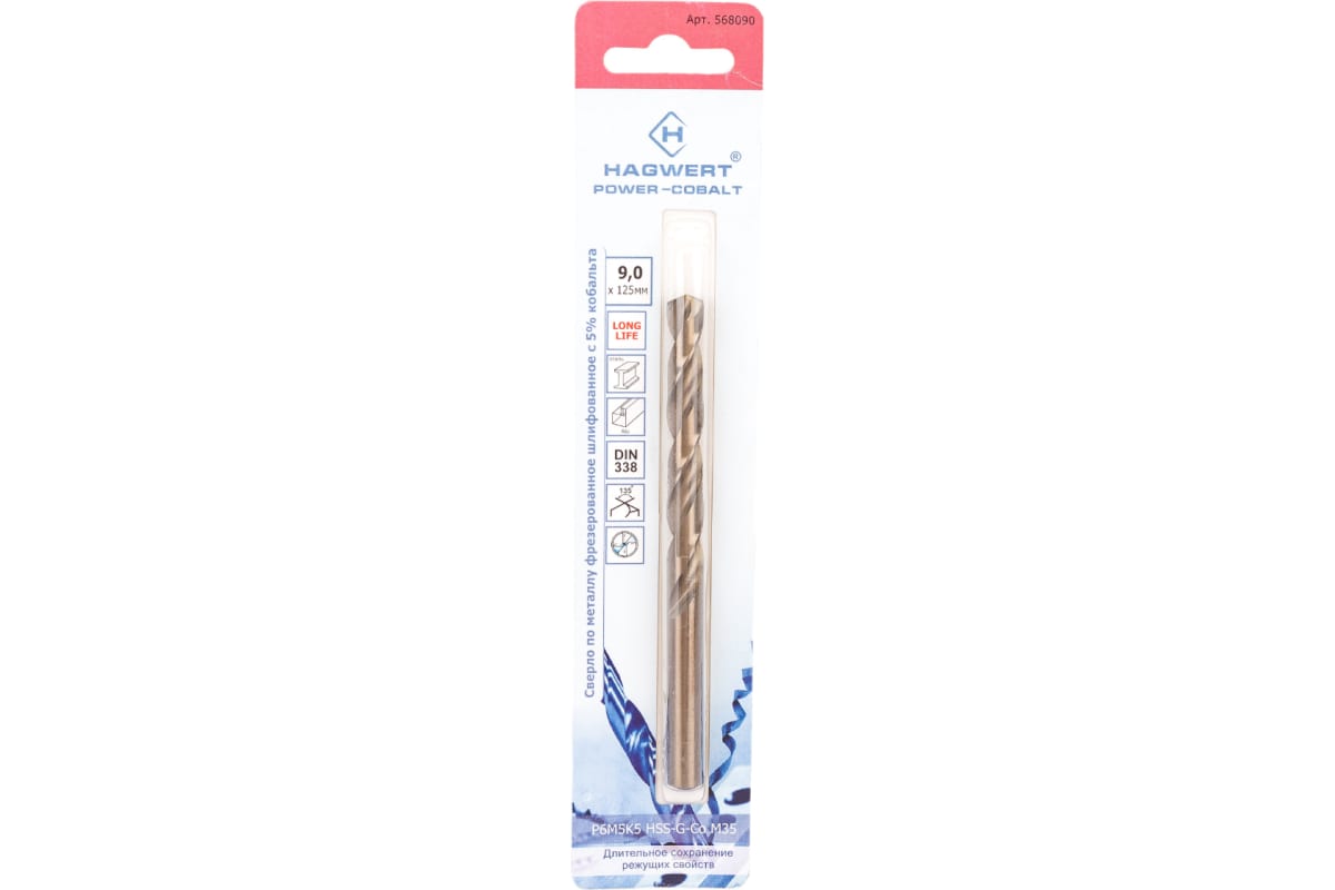 Сверло по металлу Power-Cobalt Hagwert 568090 применяется для получения сквозных и глухих отверстий в металлических заготовках. Изготовлено из высококачественной быстрорежущей стали, легированной кобальтом Р6М5К5/М35 (6 % вольфрама, 5% молибдена, 5% кобальта). Сверло предназначено для работ повышенной сложности. Выполнено согласно ГОСТ 10902-77. Возможно сверление отверстия глубиной в 4 диаметра без вывода сверла для удаления стружки. Заточка Split Point позволяет засверливать без накернивания. Поставляется в индивидуальной упаковке.