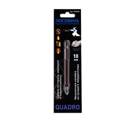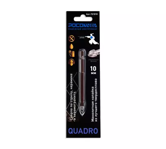 Сверло по стеклу и керамике 10,0мм Росомаха 4 режущие грани 721010