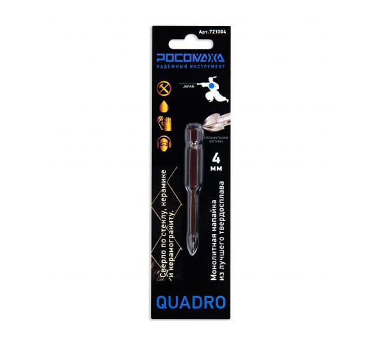 Сверло по стеклу и керамике 4,0мм Росомаха 4 режущие грани 721004