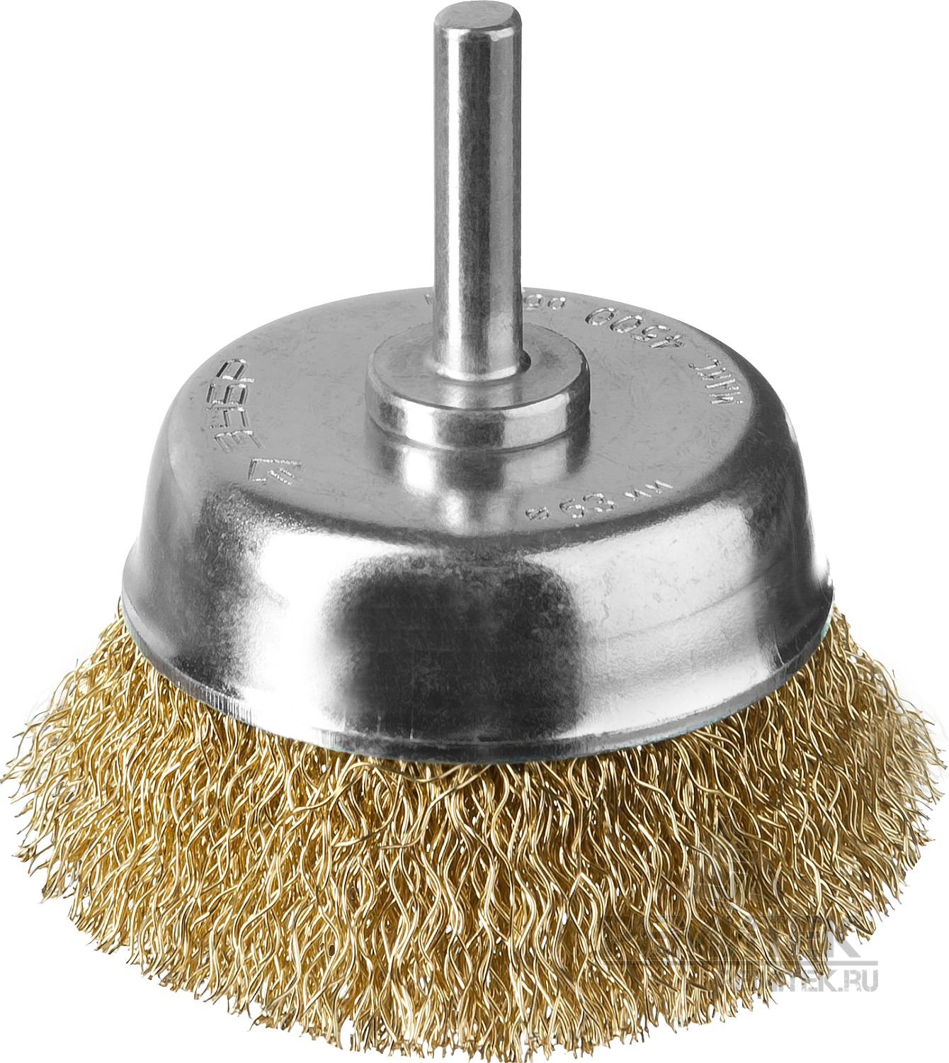 Щетка чашечная ЗУБР для дрели витая латун. 63мм 3525-063
