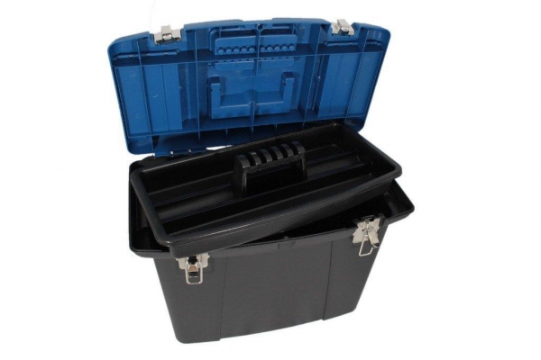 Крышка ящика оснащена тремя прозрачными отделениями, которые закрываются на защелку. Для более комфортного переноса в руках, на крышке предусмотрена удобная ручка.