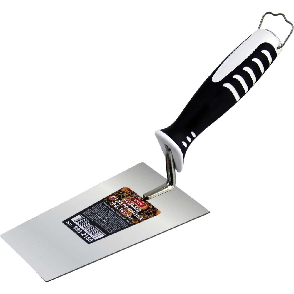 Удобная кельма с эргономичной двухкомпонентной ручкой для работы с сухими смесями. Сделана из нержавеющей полированной стали 1.2 мм. Облегчает выполнение широкого спектра задач: размешивания, отмеривания, накидывания, нанесения и выравнивания растворов. Она будет полезна при осуществлении работ по отделке помещений. За счет полотна-трапеции с прямыми гранями удобно наносить плиточный клей и убирать его излишки.