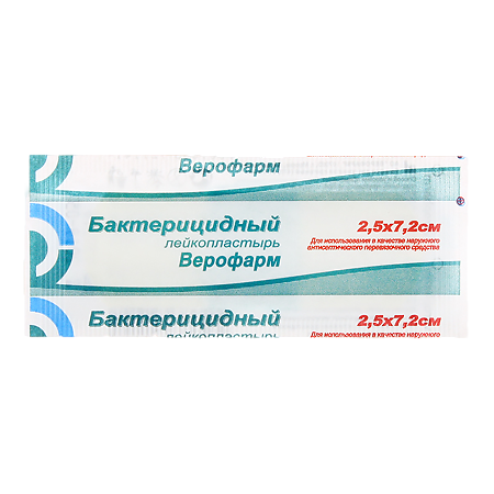 Лейкопластырь Верофарм бактерицидный 2,5 х 7,2 см (4шт) на тканной основе 6582172