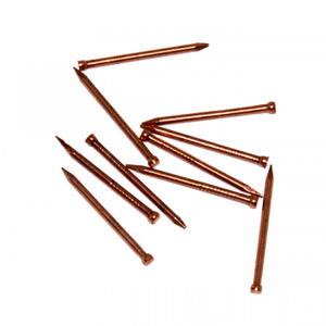 Финишные гвозди с покрытием из меди используются при отделочных работах. Изделия состоят из небольшой шляпки и гладкого заостренного наконечника. С их помощью производится монтаж плинтусов, дверных наличников, декоративных панелей.