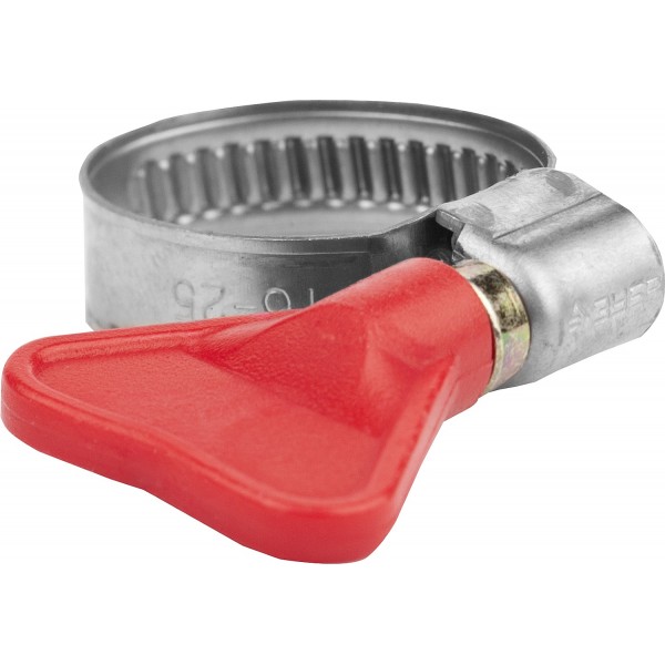 Хомут червячный состоит из накатной ленты и замка с пластиковым ключом; Пластиковый ключ обеспечивает возможность установки хомута без помощи инструментов; Накатная лента имеет гладкую внутреннюю поверхность, что обеспечивает высокую герметичность соединения без повреждения поверхности скрепляемых материалов; Изготовленный из нержавеющей стали хомут обладае