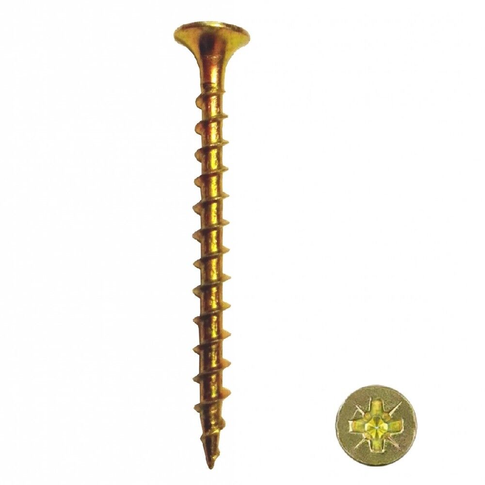 Шуруп по дереву, потай, шлиц Pz, жёлтый цинк 4,5х60 — крепежный элемент с хорошим запасом прочности, востребованный при проведении строительных и ремонтных работ, а также в быту для выполнения несложных монтажных операций. Он аккуратно и быстро вкручивается в материал без предварительного сверления, обеспечивая надежное соединение с основой. Изготовлен в соответствии с актуальными стандартами, имеет выверенные размеры и фиксированный шаг резьбы, поэтому работать с ним очень удобно.