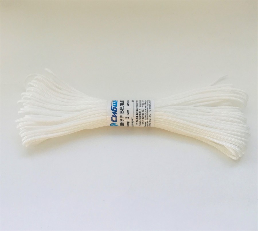Шнур (веревка) полипропилен плетеный, d=3мм, 10м, бельевой, без сердечника
