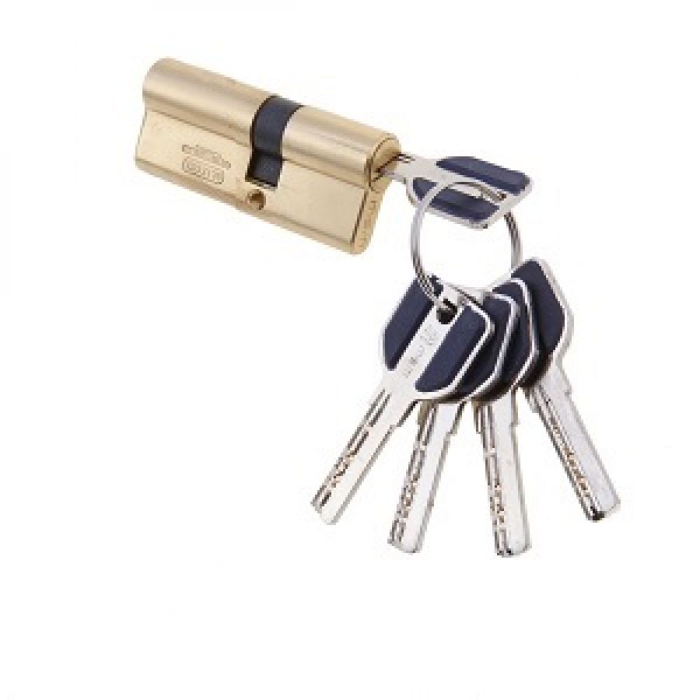 Латунный цилиндровый механизм с 5 перфорированными ключами. Ключи из латуни. Крепежный винт в цвет цилиндра. В закрытом состоянии поводок отклонен на 30 градусов, что обеспечивает дополнительную защиту от выбивания. 7 пинов, цилиндр ключ-ключ, размер 70мм (35*35).