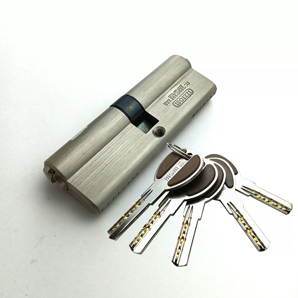 Личинка замка msm с вертушкой. Цилиндровый механизм подходит как для входной двери, так и для межкомнатной. Дверная личинка изготовлена из латунированной стали, имеет 7 пинов. В комплекте с личинкой замка 5 перфорированных двухсторонних ключа. У личинки мягкий и плавный ход, пины обеспечивают более 100 тысяч возможных комбинаций. Гарантия на цилиндр для замка 2 года.
