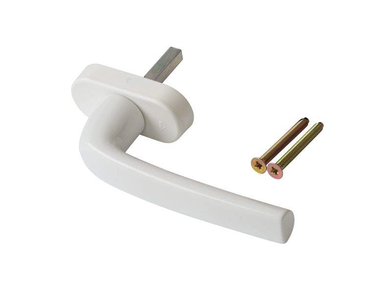 Ручка пластиковая, для пластиковых окон и балконных дверей, белая. Штифт 35мм, 7*7мм. В комплект входят крепежные винты. Длина ручки 130мм