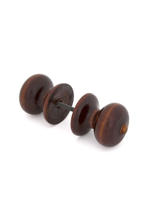 Круглая деревянная ручка-кнопка с металлической вставкой на набалдашнике – недорогой вариант для межкомнатных дверей дома и на даче. Ручка неподвижная (без механизма), ставится за минуту: обе половинки просто стягиваются винтом через отверстие в двери.