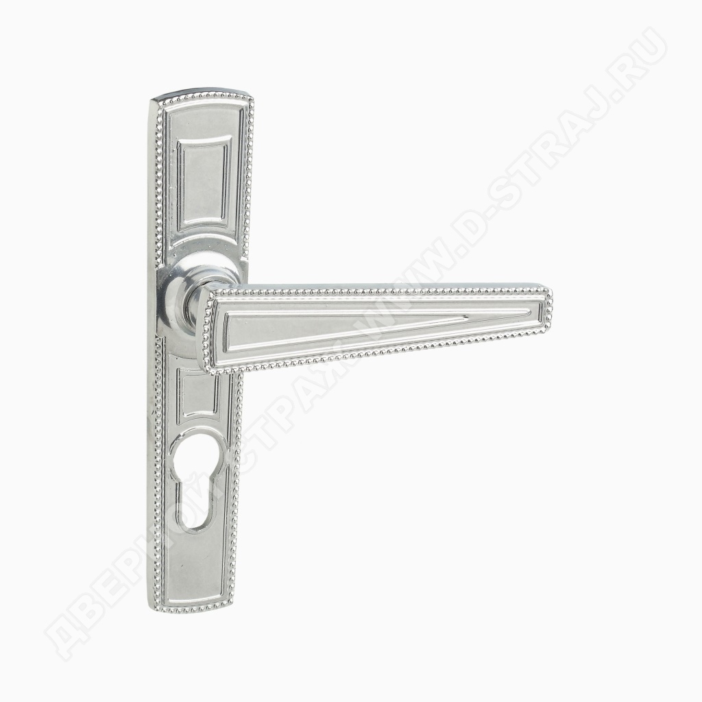 Ручка на планке РФ1-55.01 российской компании "Зенит" для дверей правого и левого открывания. Изготовлена из сплава ЦАМ с гальваническим покрытием. Модификация изделия - для цилиндровых замков. В комплекте есть винты для крепления. Нет дополнительного запирания изнутри. Особенности: Размер ручки - 180х44 мм. Удаление ключевого отверстия - 55 мм. Цвет покрытия - никель.