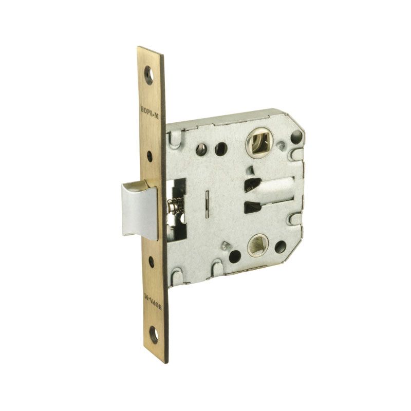 Предназначен для запирания дверей. Выпускается в двух модификациях – с прямоугольной и овальной ответной планкой, в моделях с межосевым расстоянием 47 мм и 70 мм. Данная модель также представлена с бесшумным ригелем.
