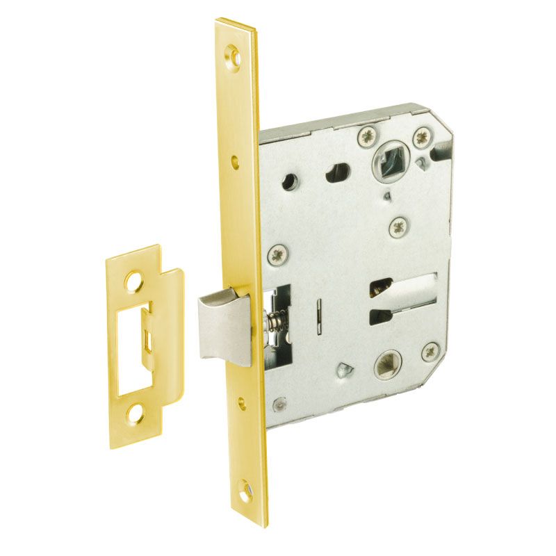 Предназначен для запирания дверей. Выпускается в двух модификациях – с прямоугольной и овальной ответной планкой, в моделях с межосевым расстоянием 47 мм и 70 мм. Данная модель также представлена с бесшумным ригелем.