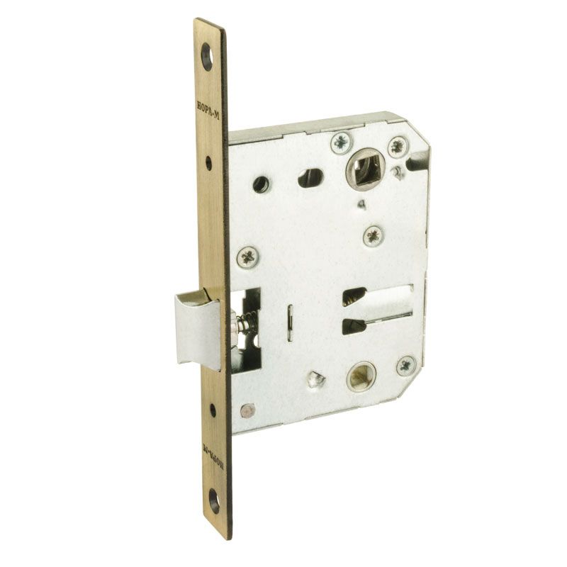 Предназначен для запирания дверей. Выпускается в двух модификациях – с прямоугольной и овальной ответной планкой, в моделях с межосевым расстоянием 47 мм и 70 мм. Данная модель также представлена с бесшумным ригелем.