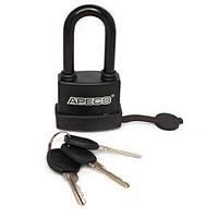 Замок навесной влагозащищенный, шириной 58 мм, высотой 110,5 мм и дужкой диаметром 9,5 мм, предназначен для запирания дверей жилых и подсобных помещений. Сделан из чугуна в пластике, имеет автоматическое запирание, комплектуется тремя английскими ключами и упакован в блистер.