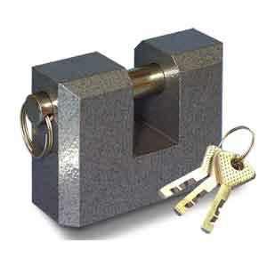 Замок навесной, шириной 90 мм, высотой 65 мм и закаленной дужкой диаметром 14 мм, предназначен для запирания дверей жилых и подсобных помещений. Сделан из алюминия, комплектуется тремя финскими ключами ,упакован в блистер.