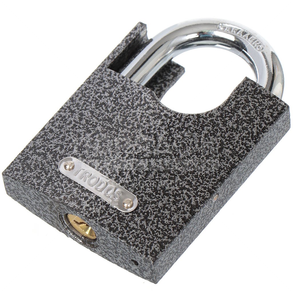 Замок навесной, шириной 50 мм, высотой корпуса (без учета дужки) 64 мм и закаленной дужкой диаметром 8,5 мм, предназначен для запирания дверей жилых и подсобных помещений. Изготовлен из чугуна, имеет автоматическое запирание, комплектуется тремя английскими ключами.