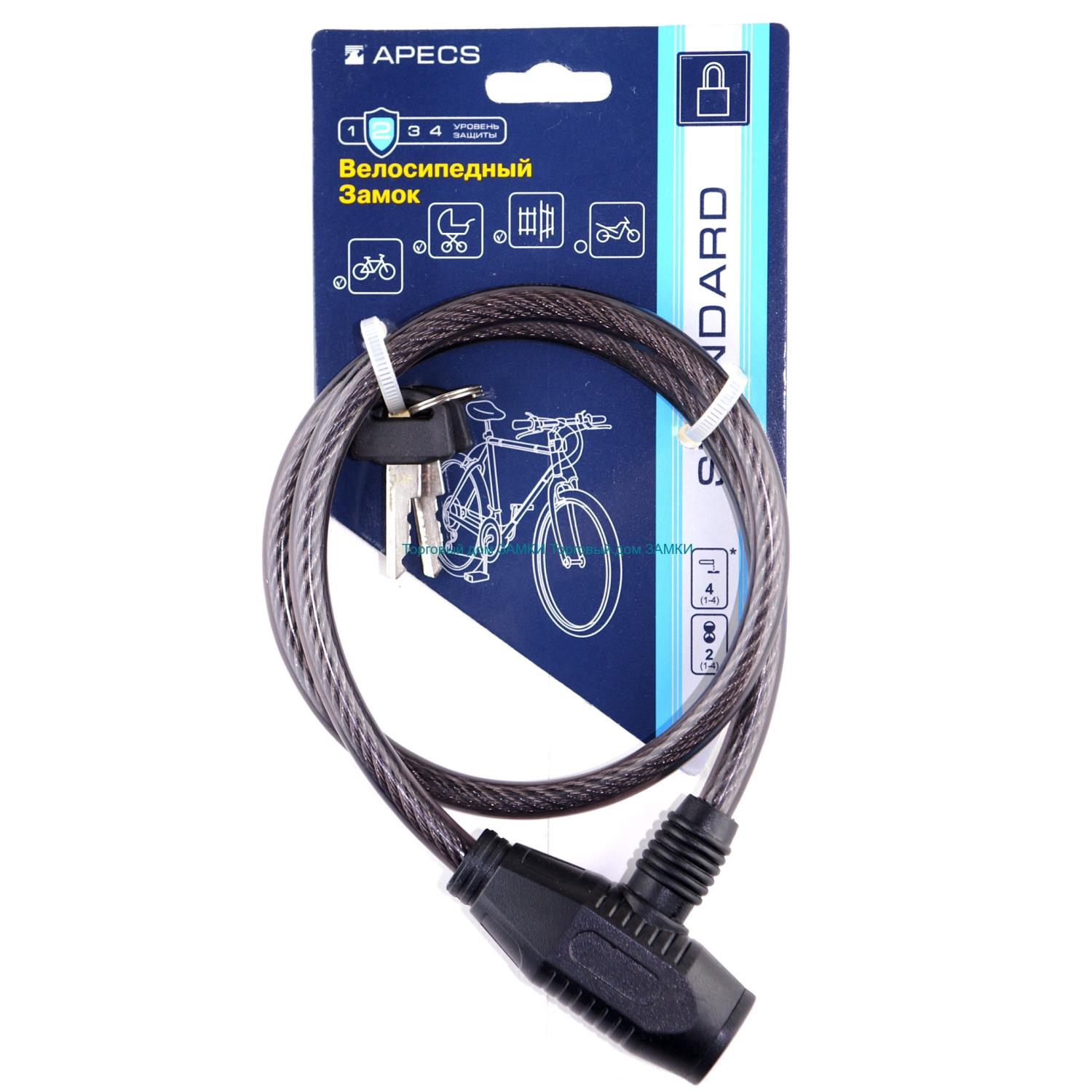 Описание: Велосипедный замок используется, как противоугонное устройство для защиты колясок, велосипедов, спортивного инвентаря. Корпус из Стали с автоматическим запиранием, Тип механизма цилиндровый под английский ключ, Диаметр троса 8 мм, Длина троса 65 см, Количество ключей - 2 шт.