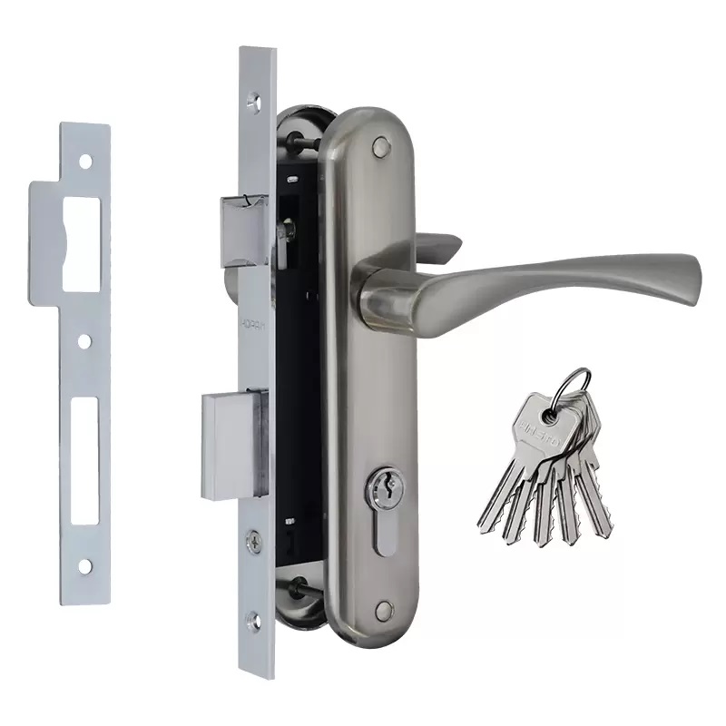Комплект замка предназначен для установки в деревянные входные двери. В комплект входят 2 ручки на планке, корпус замка, ответная планка, цилиндровый механизм и 5 ключей. Межосевое расстояние 70 мм. Комплект универсальный, можно устанавливать на двери левого и правого типа открывания. Цилиндр и ключи выполнены из латуни, ручки на планке - сталь, алюминий, корпус стальной, механизм из закаленной стали. Гальваническое многослойное покрытие лицевых деталей, корпус замка имеет защитное антикоррозийное напыление. Гарантия на работу изделия 5 лет.