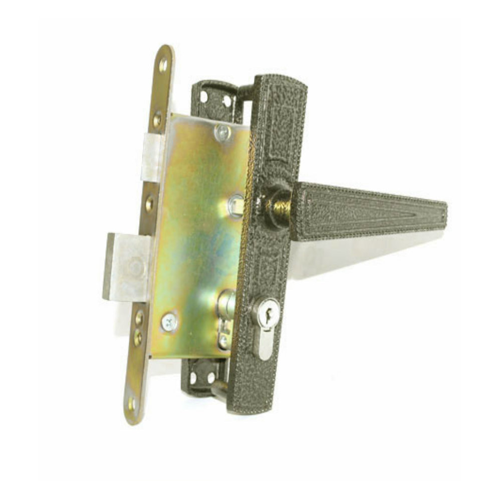 Описание: Замок для деревяных дверей. 4 ключа. Накладка крепится стяжными винтами изнутри. С внутренней стороны ручкой фиксируется от открытия снаружи. Межосевое расстояние 55 мм. Растояние до цилиндрического мех-ма 55мм. Габариты:В-130,В планки 200,Ш-85,Т-15