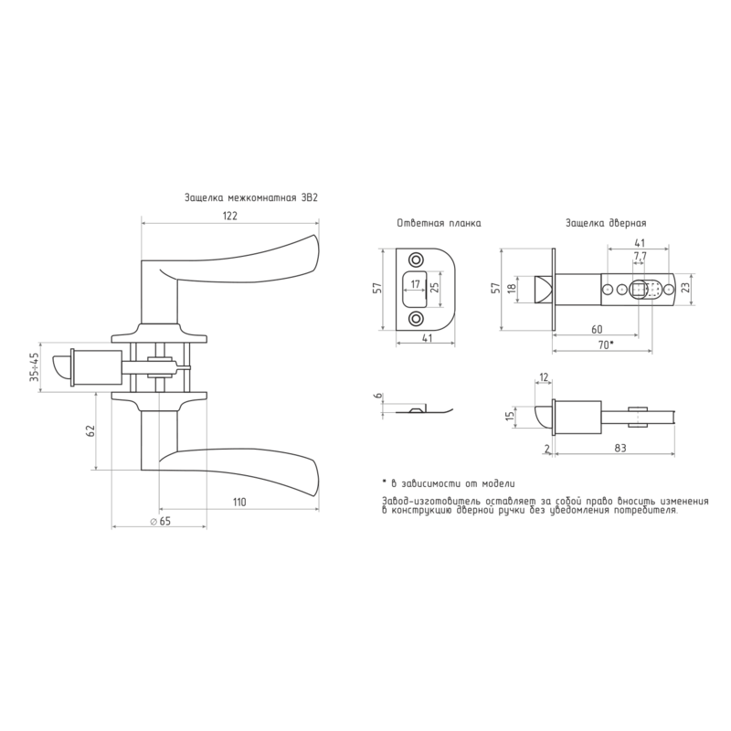 Защелка м/к ЗВ2-01(стар.бронза) 5642/15644