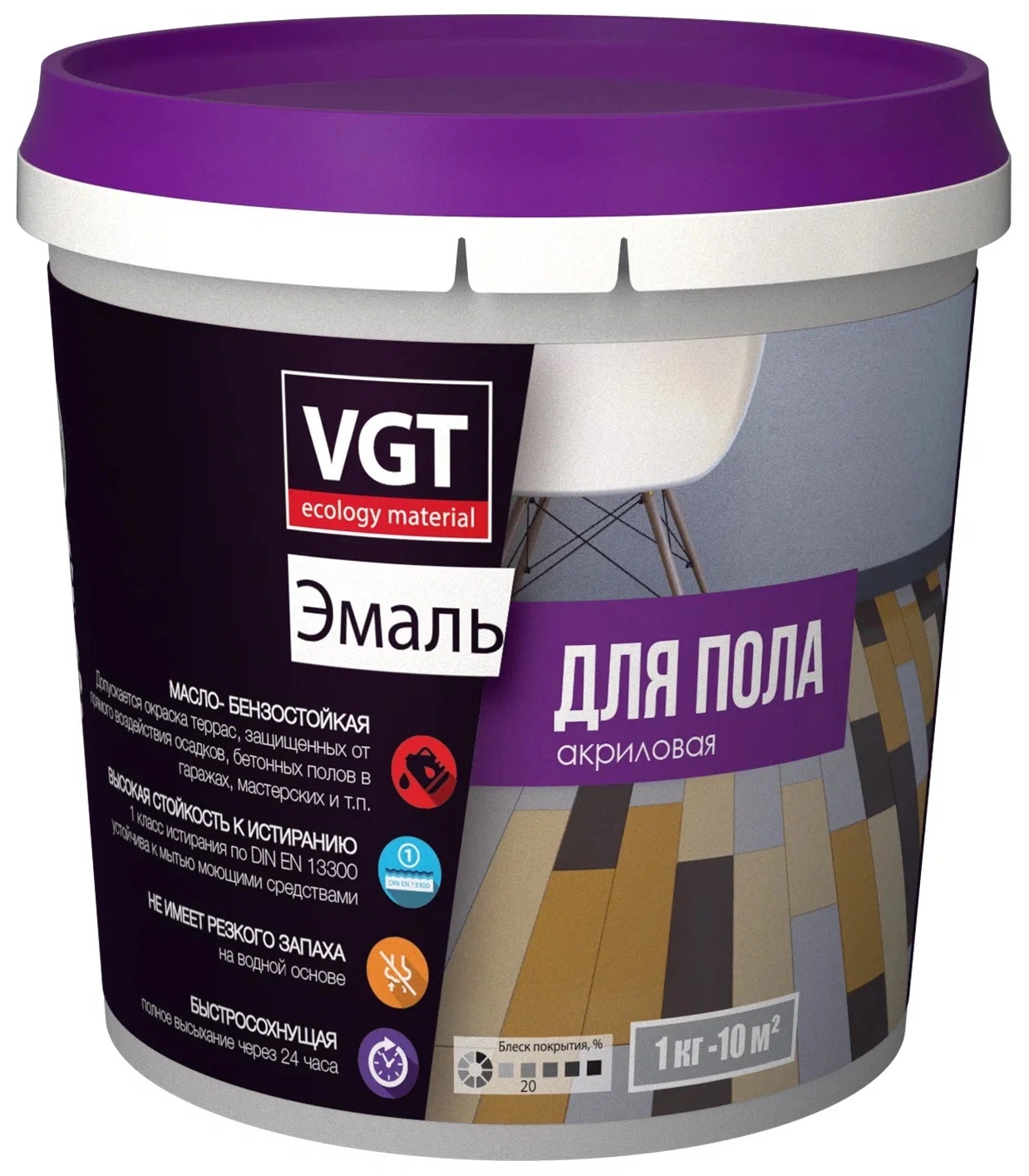 Применяется для окраски деревянных и бетонных полов внутри бытовых помещений.