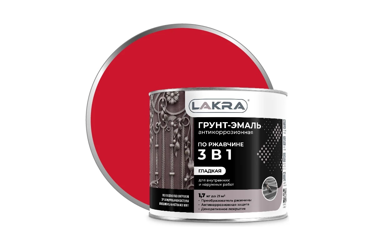 Грунт-эмаль Лакра 3 в 1 красный 1,7кг 9591632