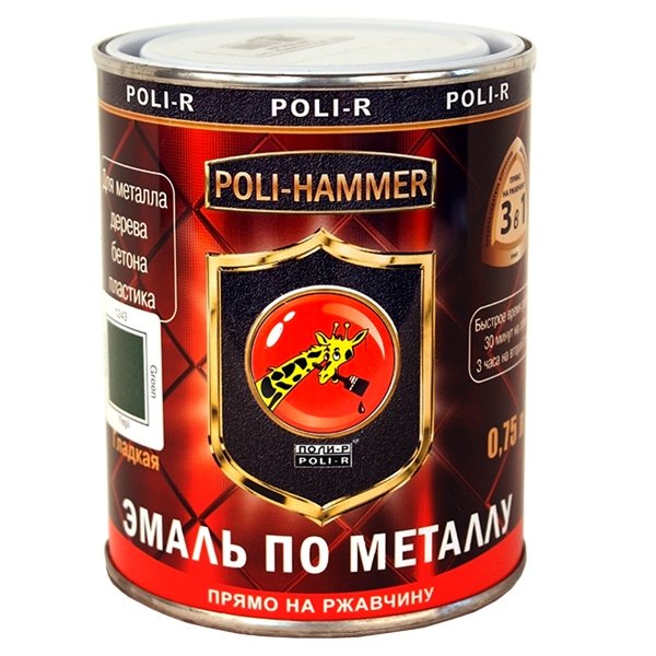 Эмаль по ржавчине Poli-Hammer обеспечивает идеальную защиту от коррозии на длительный срок и создает превосходный декоративный эффект. Применяется для окраски пластиковых, деревянных, кирпичных, бетонных и металлических оснований (изготовленных из черных, цветных и оцинкованных металлов).
