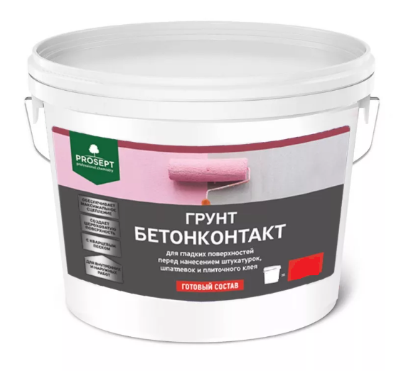 В состав продукта входят разные по размерам гранулы кварцевого песка, благодаря чему достигается высокая степень адгезии и исключается осыпание отделочных покрытий, таких как штукатурка, гипс или шпатлевка. Цветной пигмент помогает наносить грунт ровным слоем.