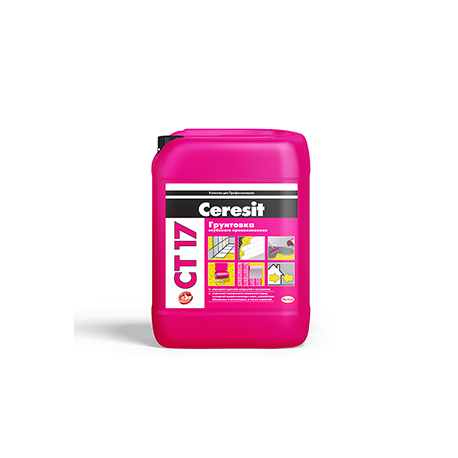 Грунтовка CT 17 PRO предназначена для обработки поверхностей перед нанесением штукатурных и напольных смесей, плиточных клеев и т.д. Применяется для обработки всех видов впитывающих оснований: цементных штукатурок и стяжек, известковых и гипсовых штукатурок, легкого и ячеистого бетона, ангидритных стяжек, кладок из кирпича и природного камня, древесностружечных и древесноволокнистых плит, гипсокартона и т.д. Обладает высокой проникающей способностью, снижает впитывающую способность оснований, связывает пыль, укрепляе