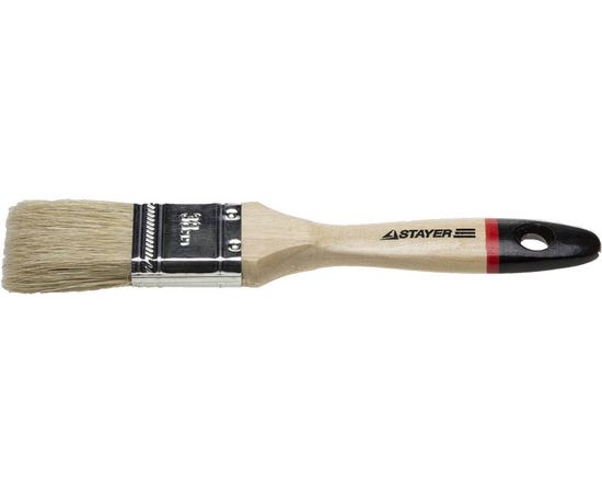 Кисть флейцевая Stayer универсал серия euro 38 мм, 0102-038 Кисть флейцевая Stayer предназначена для покрасочных работ со всеми видами лакокрасочных материалов , в первую очередь с масленой краской , олифой , древесным маслом . Имеет металический бандаж , светлую натуральную щетину и деревянную лакированную ручку с отверстием для подвески. Отличается от кистей флейцевых серии 0101 более густой и плотной структурой .