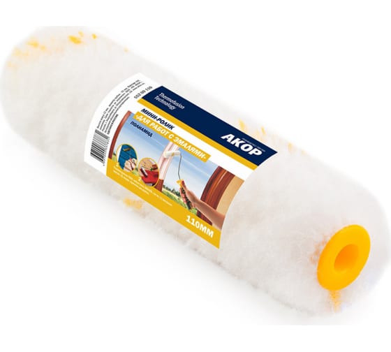 Мини-ролик АКОР Эмали - 110 мм, ворс 12 мм 4607044337831 имеет прочное основание, которое выдерживает продолжительные нагрузки. Внешний слой также обладает хорошей устойчивостью к износу. Поставляется в пакете для защиты ворса от загрязнений. Материал имеет достаточную впитываемость для окрашивания без пробелов.