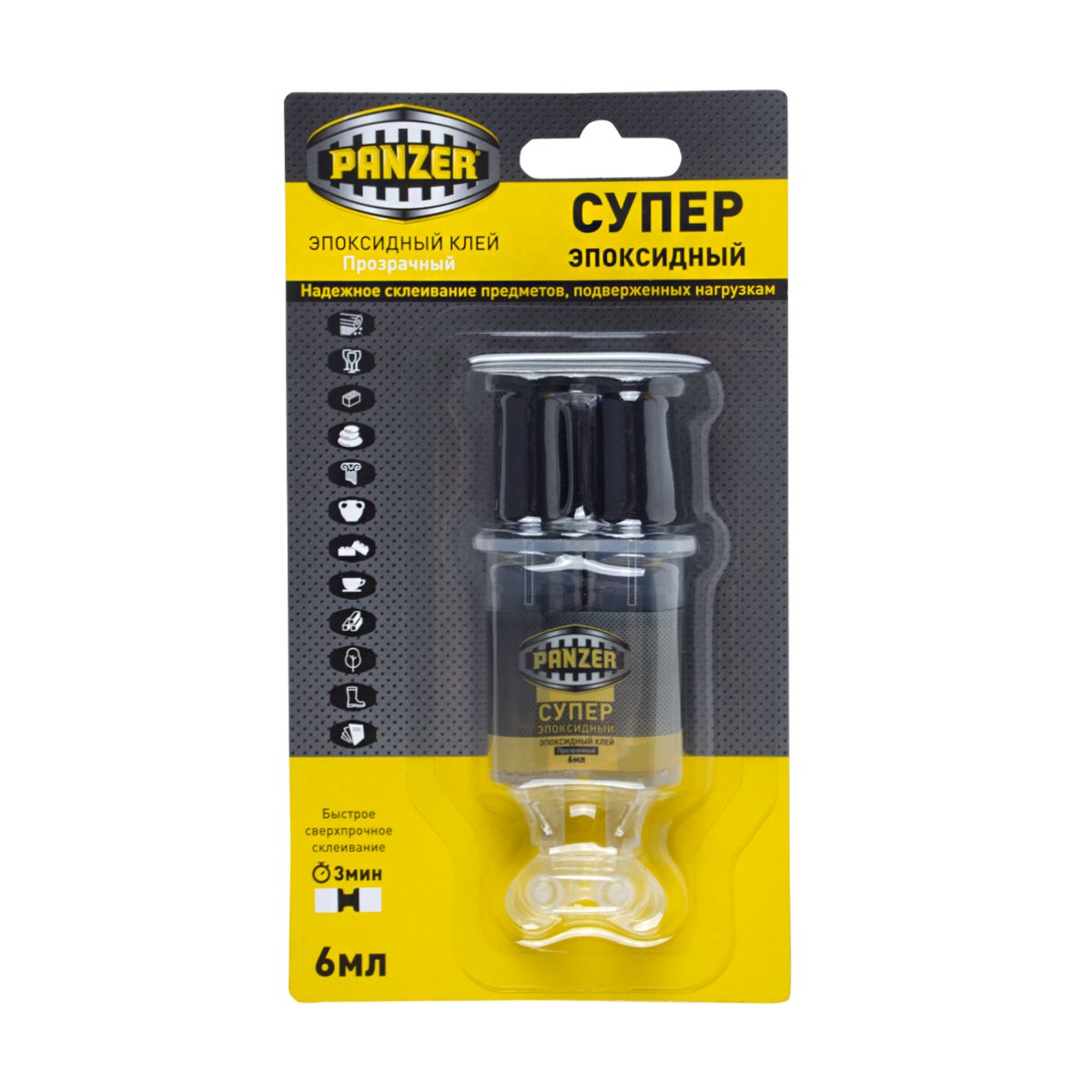 Клей эпоксидный PANZER прозрачный шприц 6мл 246393