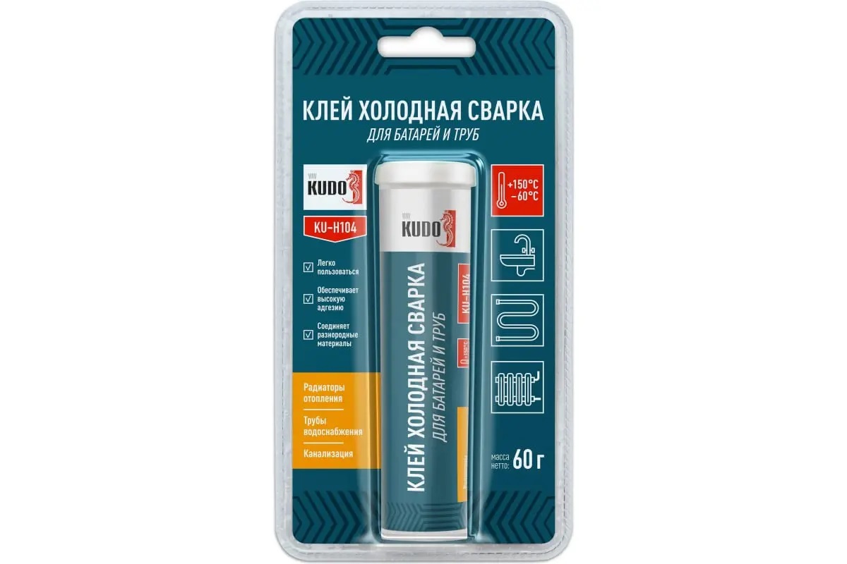 Клей KUDO «Холодная сварка» для батарей и труб 60г 11605448