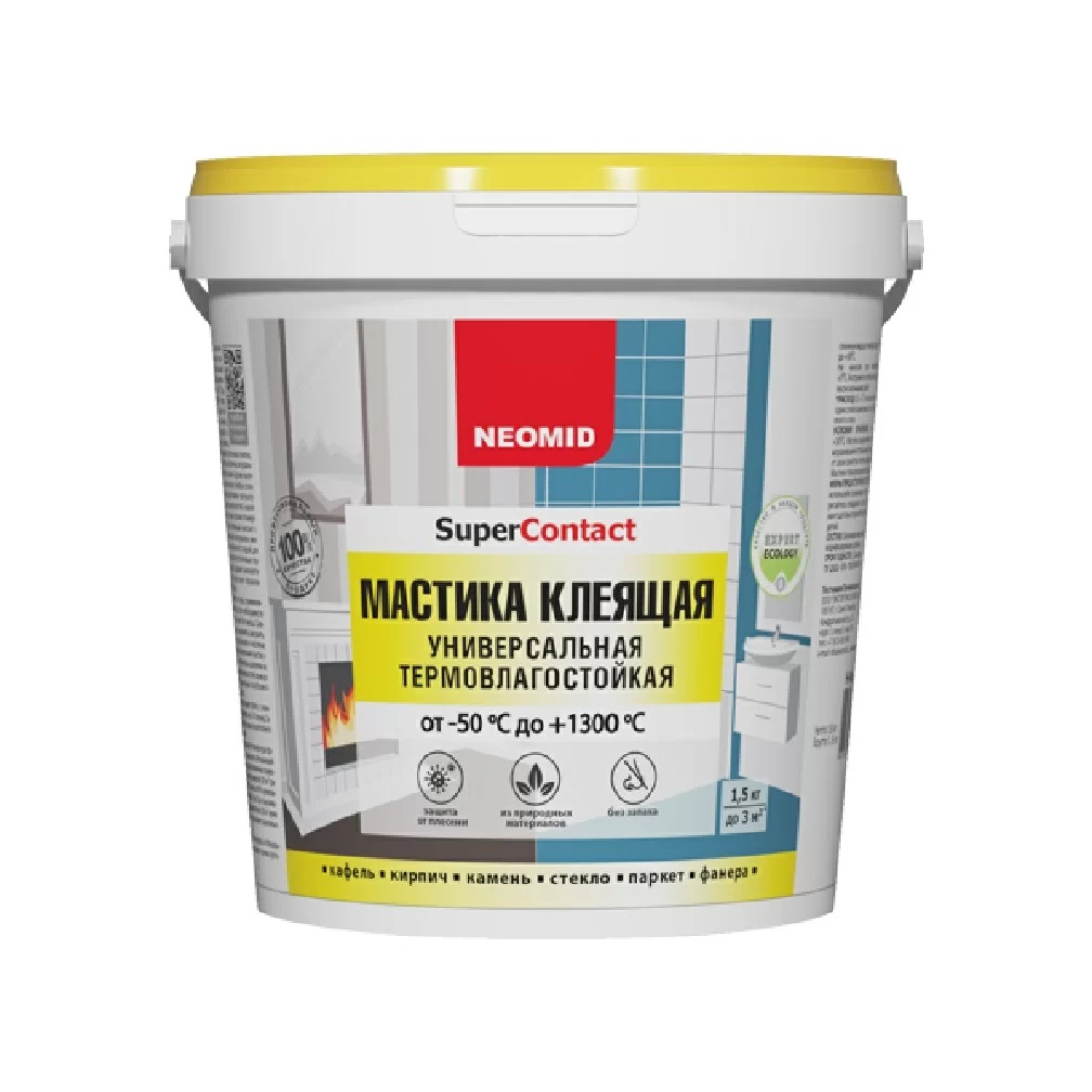 Мастика клеящая универсальная термовлагостойкая (высохший клеевой шов выдерживает температуру от -500С до +13000С) Предназначена для кладки и облицовки печей и каминов, склеивания кафельной и метлахской плитки, стекла, пенополистирольных потолочных плиток, дерева, картона, бетона, кирпича, натурального и искусственного камня (кроме материалов на гипсовой основе) в любых сочетаниях, неглубокой шпатлевки оштукатуренных и бетонных поверхностей, наклеивания фанеры на стяжку (кроме поверхностей, имеющих постоянный контакт с водой). При склеивании материалов имеющих периодический контакт с водой, для швов использовать влагоустойчивые герметики или затирки. Содержит антисептические добавки. Препятствует образованию плесени и грибов.