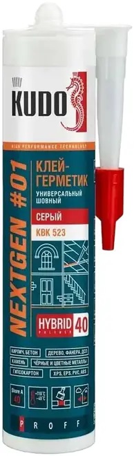 описание: Клей-герметик гибридный KUDO NEXTGEN KBK-523 шовный, MS-полимер, ШОР 40, серый, 280 мл. Однокомпонентный клей-герметик KUDO® PROFF NEXTGEN предназначен для создания эластичных и высокопрочных герметизирующих и соединительных швов, подверженных вибрации и деформации. Используется при строительстве и ремонте объектов промышленного и гражданского назначения для герметизации швов и заполнения соединений с высокой подвижностью: компенсационных швов в строительных панелях и кровельных конструкциях, систем кондиционирования и вентиляции, уплотнения зазоров вокруг кабельных каналов и трубных проходок, монтажных стыков окон, дверей, установки ванны. Гибридный клей-герметик (современный аналог MS-полимеров) KUDO® характеризуется превосходной адгезией к большинству строительных материалов: кирпич, бетон, стекло, гипсокартон, полиуретан, различные виды пластика (кроме полиэтилена, полипропилена и фторопласта), эмаль, керамика, сталь, медь, цинк, свинец, алюминий, дерево. Не требует предварительного грунтования