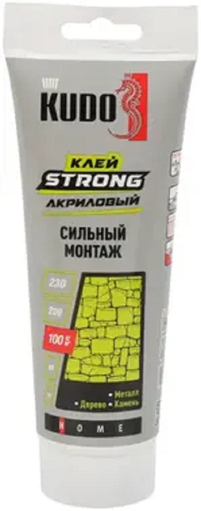 описание: Высококачественный универсальный акриловый клей KUDO® «STRONG» специально разработан для быстрого и надёжного монтажа изделий из древесины, ДСП, ДВП, EPS, XPS, ПВХ и UPVC на бетонные, кирпичные, каменные, металлические, оштукатуренные и деревянные поверхности. Клей «Жидкие гвозди» KUDO® «STRONG» существенно ускоряет отделочные работы, экономичен и прост в использовании. Предназначен для наружных и внутренних работ. Не рекомендуется использовать в ванных комнатах и душевых кабинах. Не содержит растворителей, не токсичен и не горюч. Химически нейтральный, не вызывает коррозии металлов. Не имеет запаха. Легко наносится. После полного отверждения можно окрашивать водными и синтетическими красками.