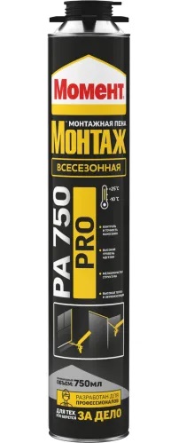 Профессиональная монтажная пена Момент Монтаж Всесезонная представляет собой готовую к применению однокомпонентную полиуретановую пену, затвердевающую под воздействием влажности воздуха. Применяется со специальным пистолетом для монтажных пен. Области применения Монтаж оконных и дверных проемов, Герметизация щелей, Герметизация мест соединения кровельных конструкций и изолирующих материалов, Создание звукоизолирующих экранов, Герметизация швов и стыков вокруг труб. Плотность пены TM 1003-2010 ок. 20 кг/м3 Время образования нелипкой поверхности HENK PU 4-3 7 - 10 мин. Время до начала обрезки TM 1005-2010 35 мин. Давление отверждения TM 1009-2012 макс. 20 кПа Расширение после нанесения TM 1010-2012 макс. 50 % Размерная стабильность TM 1004-2012 +/- 7 % Максимальная ширина шва TM 1006-2011 5 см Условия проведения испытания: +5C и +35С °C Класс пожароопасности EN 13501 F +7 495 745 22 34 Водопоглощение 24 час. EN 1609 макс. 1 % Водопоглощение 28 дней EN 12087 макс. 10 %